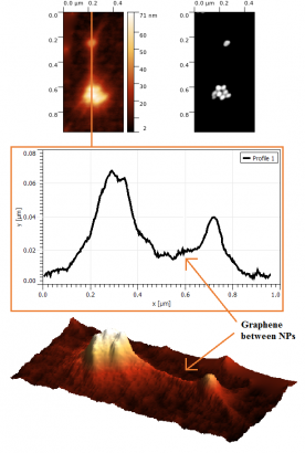 In situ SEM/AFM characterisation of hybrid structures made of graphene-veiled gold nanoparticles for bio sensing